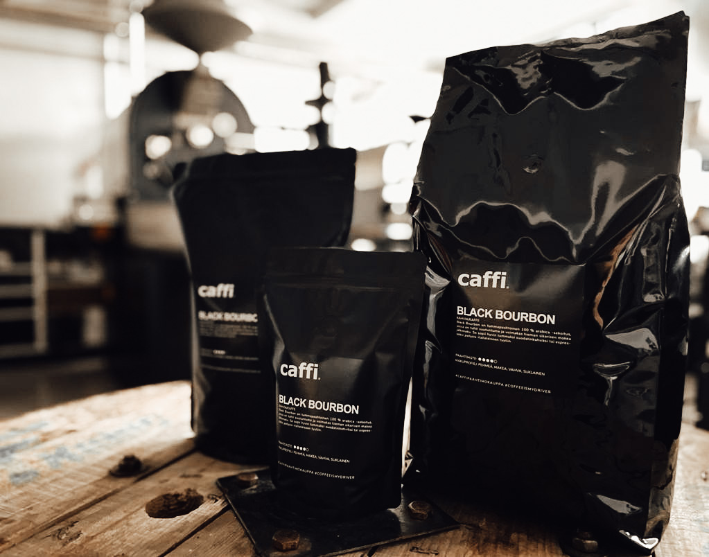 Ja tietysti hyvä kahvi pitää nauttia aina tuoreena. Koska paahdamme kahvimme pienissä erissä ja vain tarpeen ja tilausten mukaan, caffi-kahvi on aina ihan tuoretta.